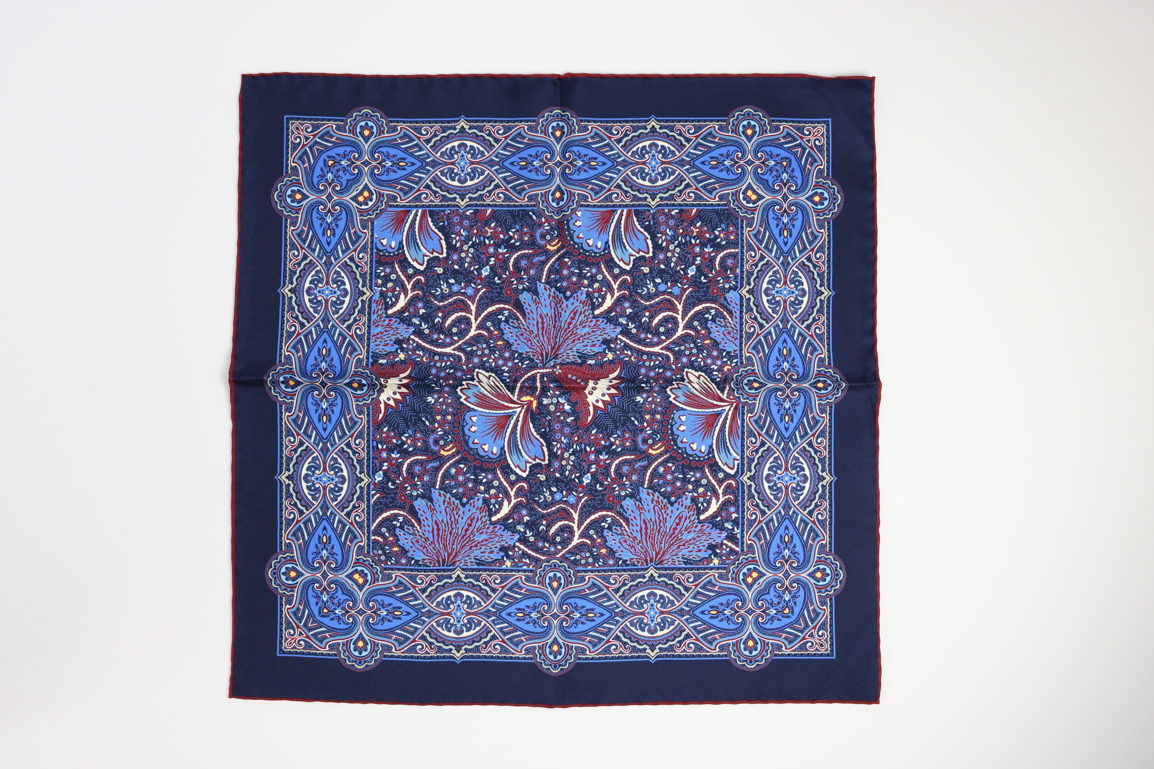 • ROBERRT KEYTE別注 シルクポケットスクエア(小紋ペイズリーミックスネイビー)
