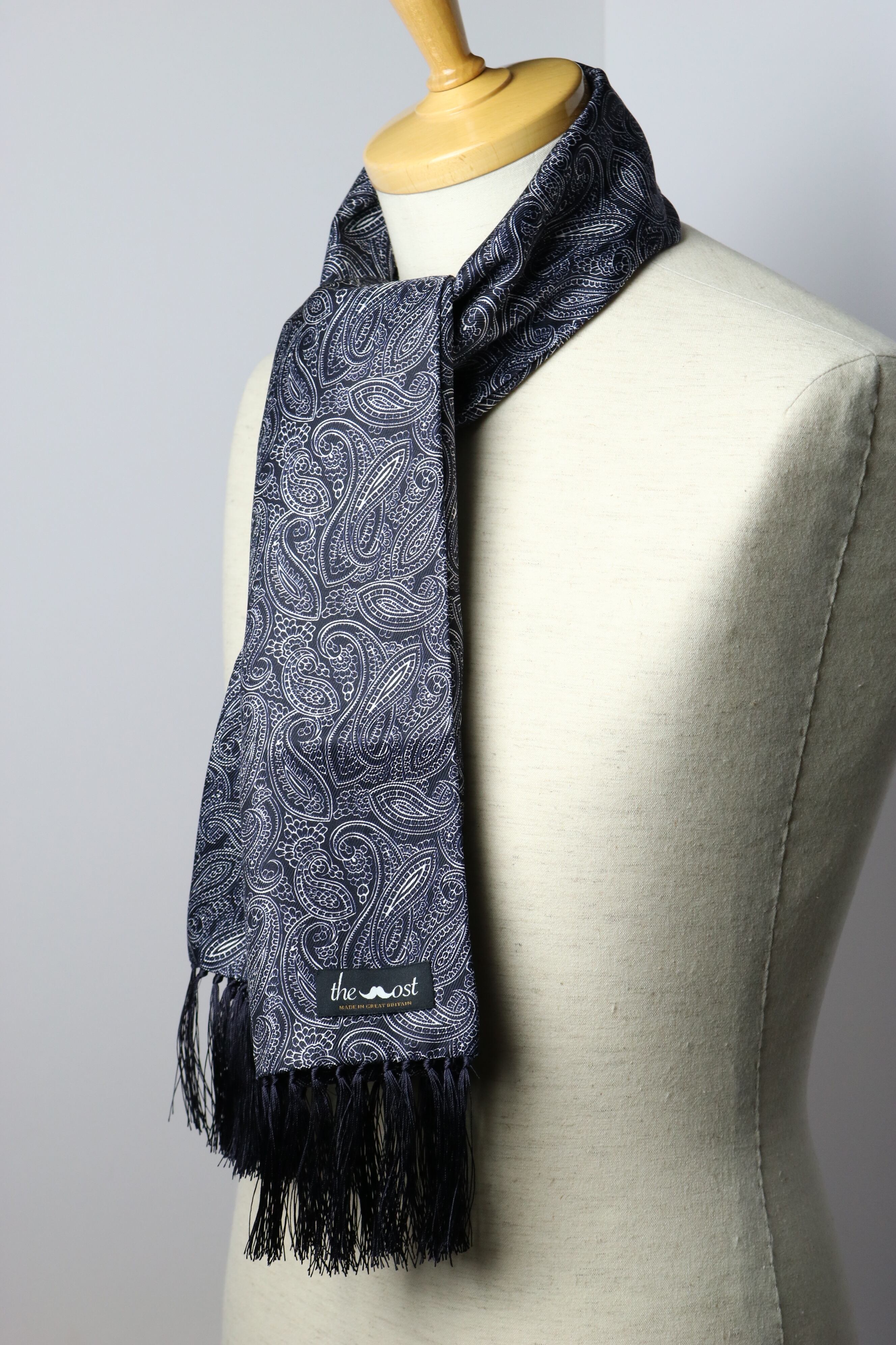 ≪ADAMLEY DAVID EVANS&CO.別注≫ ツートンペイズリー 100%シルクチューブラースカーフ(ネイビー×ホワイト)